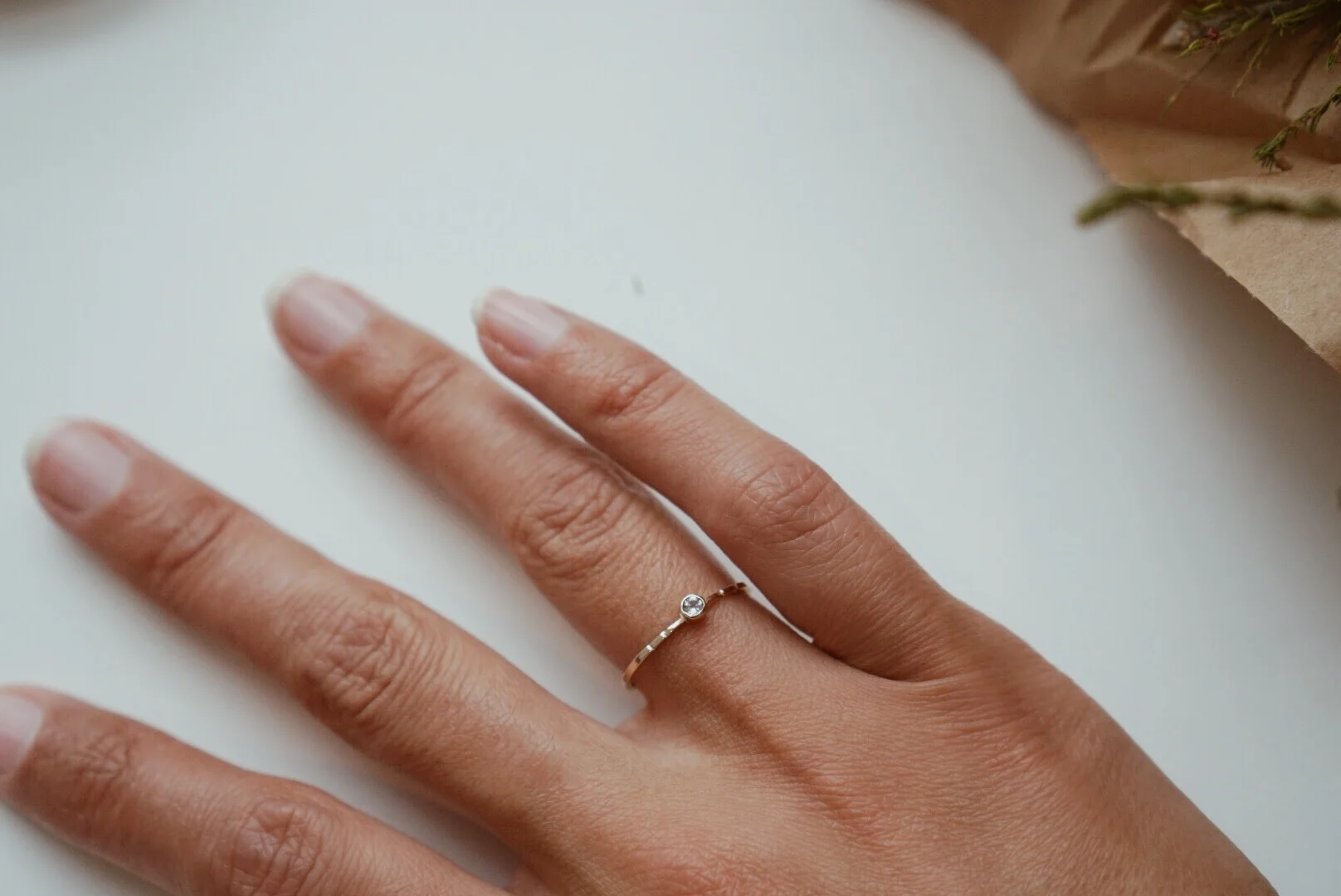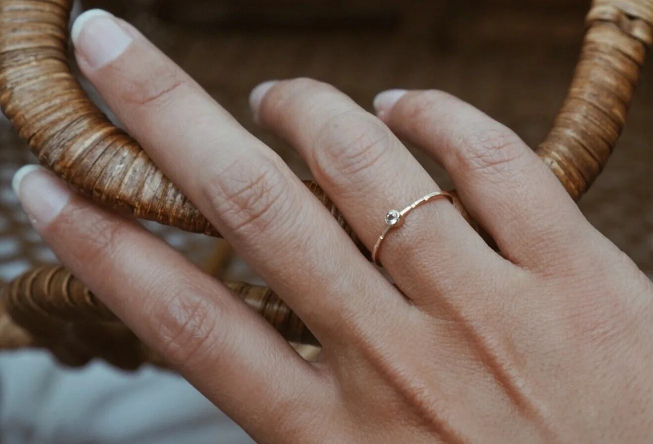- Whitney Shelhamer White Topaz Hopita Ring 14k gold 1mm band + .05 carat White Topaz stone Size 6.5, handmade in Florence, OR retails for $175 www.whitney-shelhamer.myshopify.com + @whitneyshelhamer.